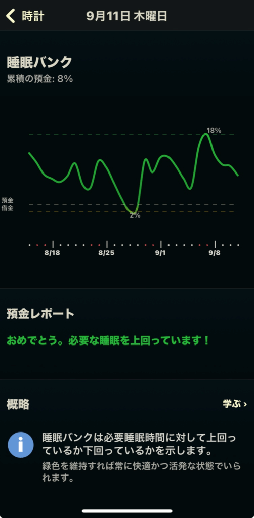 特に「睡眠貯金」は便利で、「寝不足傾向になってきているな」と早めに気づけるようになり、意識的に睡眠時間を確保する対策ができました。